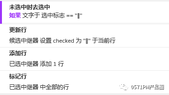 先将点击行中的选中状态字段的文字设置为“已选中”的文字,这样子我们页面上就看到了选中状态的图形文字。