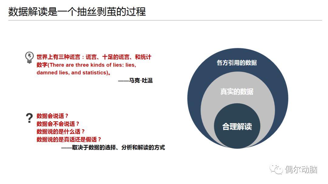 数据解读,正确的数据解读,是所有数据分析工作最关键的一步,这一步错了,前面的所有努力都是白搭,然后,往往很多人简单的以为“数据会说话”,他们认为把数据处理完一摆就ok了